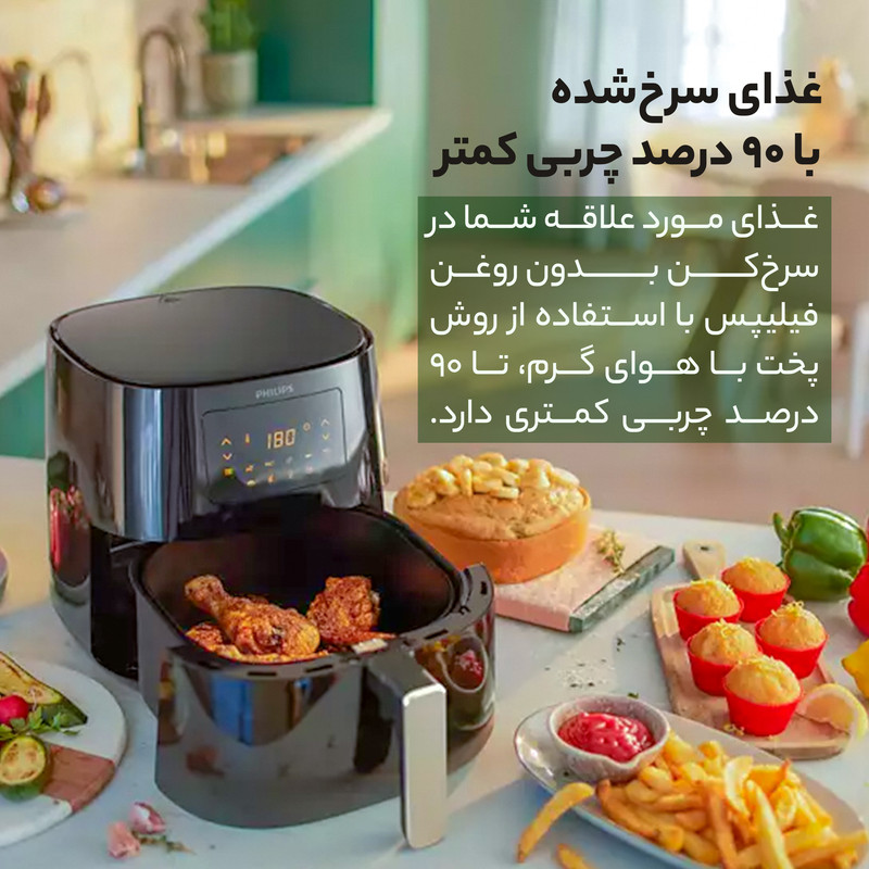 سرخ کن مدل HD9270 یکی از برترین و کم چربترین سرخ کن جهان میباشد. سرخ کنها از وسایل کار راه انداز و کاربردی است اما به دلیل مصرف خیلی زیاد روغن و نداشتن صرفه اقتصادی باعث شده که کمتر مورد استفاده قرار بگیرد. سرخ کن HD9270 فیلیپس این مشکل را حل کرده است. شما با استفاده از این سرخ کن تنها با چند قاشق روغن و در حدود 90 درصد چربی کمتر می توانید انواع غذاها را برای خود آماده کنید سرخ کن فیلیپس مدل HD9270 سرخ کنی سالم با فناوری Rapid Air فناوری هوای سریع یا Rapid Air با طراحی منحصر به فرد به شکل ستاره دریایی خود هوای گرم را می چرخاند و غذاهای خوشمزه ای را ایجاد آماده می کند که ظاهری بسیار ترد و زیبا و از داخل کاملا پخته شده و نرم هستند و با مقدار روغن کمی حاضر می شوند و چربی زیادی به خود جذب نمیکنند. شستشوی آسان سرخ کن فیلیپس مدل HD9270 تمامی قطعات متحرک سرخ کن فیلیپس مدل HD9270 قابل شستشو در ماشین ظرف شویی می باشند و هیچ مشکلی برای آنها پیش نخواهد آمد بدیهی است که بدنه ی اصلی که قطعات الکتریکی دستگاه درون آن قرار دارند را نمی توان در معرض آب و در ماشین ظرف شویی قرار داد. فناوری Airfryer و Keep Warmسرخ کن فیلیپس مدل HD9270 فناوری Airfryer تعبیه شده در سرخ کن فیلیپس مدل HD9270 برای شما امکان سرخ کردن، پختن، کباب کردن و حتی دوباره کردن را فراهم می کند. همچنین پس از آماده شدن غذا می توانید دستگاه را روی حالت گرم نگهدارنده تنظیم کنید و تا 30 دقیقه بعد از حاضر شدن غذا دمای آن را به صورت ایده آل نگه دارید. برنامه پخت های از پیش تعیین شده سرخ کن فیلیپس مدل HD9270 7 برنامه پخت از پیش تعیین شده در سرخ کن فیلیپس مدل HD9270 تعبیه شده است که می توانید با انتخاب کرن آنها از طریق صفحه نمایشگر لمسی روی بدنه دستگاه انواع غذا ها مثل سیب زمینی سرخ کرده، گوشت، مرغ و ماهی، کیک و حتی انواع سبزیجات را آماده کنید.